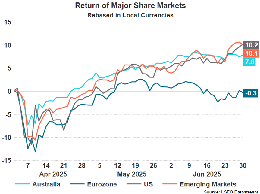 Overall, almost all equity markets ended the quarter in positive territory, largely due to the prevailing belief that President Trump would now need to adopt a more measured approach to tariffs. Risk assets outperformed defensive assets, signalling a return to the new normal where technology giants lead the charge. While the tariff threats posed little risk to Australian exports, the potential economic impact on Australia’s largest trading partner, China, was certainly taken into account.