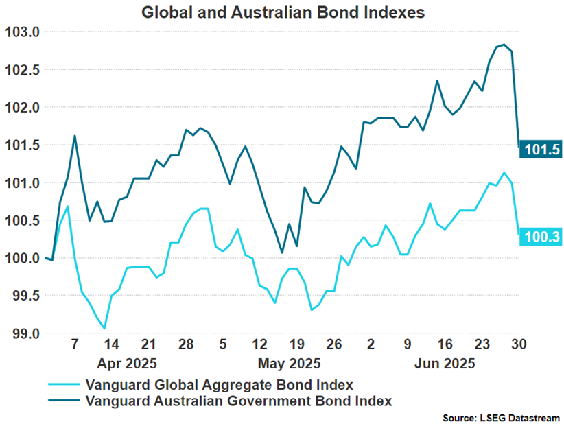 Fixed income experienced similar volatility, as bond investors assessed to what extent these tariff measures would feed into inflation and economic-growth forecasts, ultimately impacting rate-cut expectations. The Australian and global fixed-income markets followed suit, seeing a gradual fall in bond yields.
