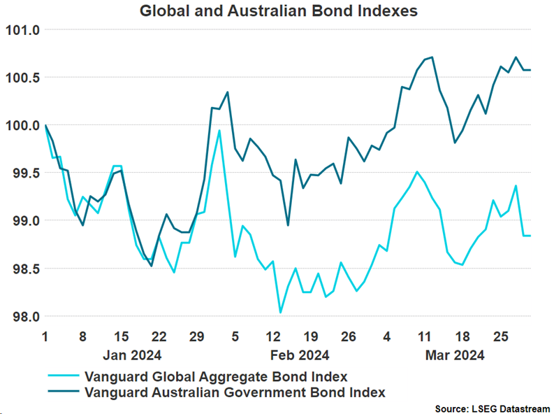 - Bond Split: Australian bonds gained, and global bonds fell as markets reacted to economic data and central bank comments.