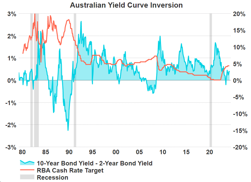 The Australian yield curve has normalised for quite some time now, but we are still waiting to see whether Australia will enter a recession or narrowly avoid one as inflation slows.