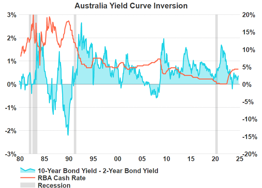 The Australian yield curve has normalised for quite some time now, but we are still waiting to see whether Australia will enter a recession or narrowly avoid one as inflation slows. However as previously mentioned with such sticky inflation, the RBA must correctly time rate cuts in order to avoid a recession.